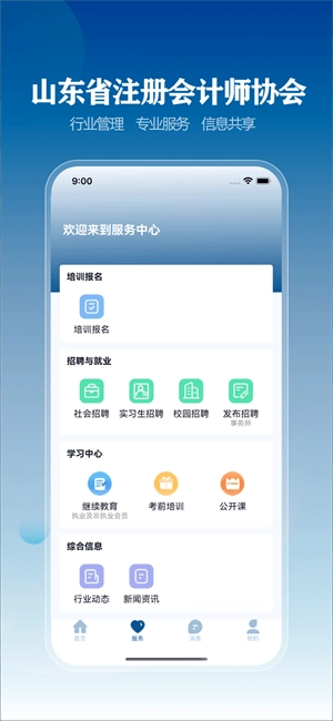1.在【首页】可以看到关于山东注册会计师的各项服务信息,在提供相关资讯的同时还能够了解培训、报名信息