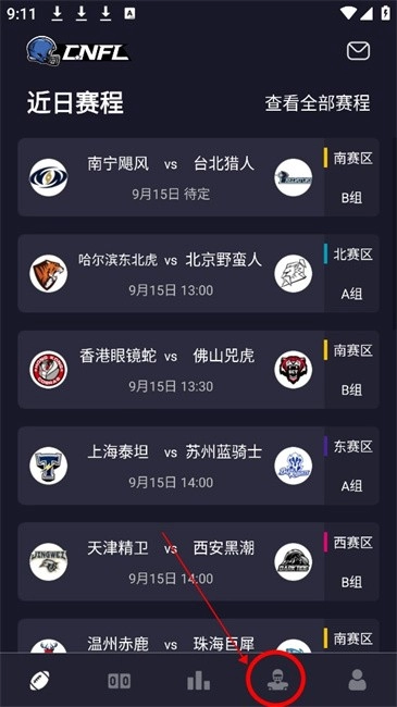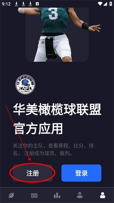 1.并打开进入软件界面,点击下方橄榄球球员图标
