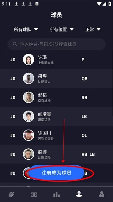 2.在球员页面点击【注册成为球员】