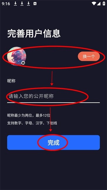 7.完善头像、昵称后点击【完成】